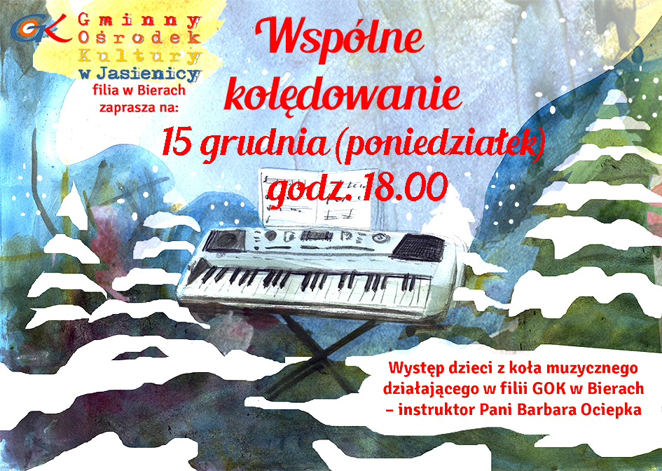 Gminny Ośrodek Kultury w Jasienicy filia w Bierach zaprasza na wspólne kolędowanie.