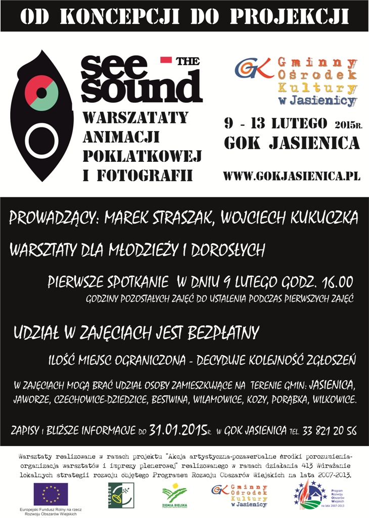 Gminny Ośrodek Kultury w Jasienicy ogłasza zapisy na Warsztaty Animacji Poklatkowej i Fotografii "See The Sound".