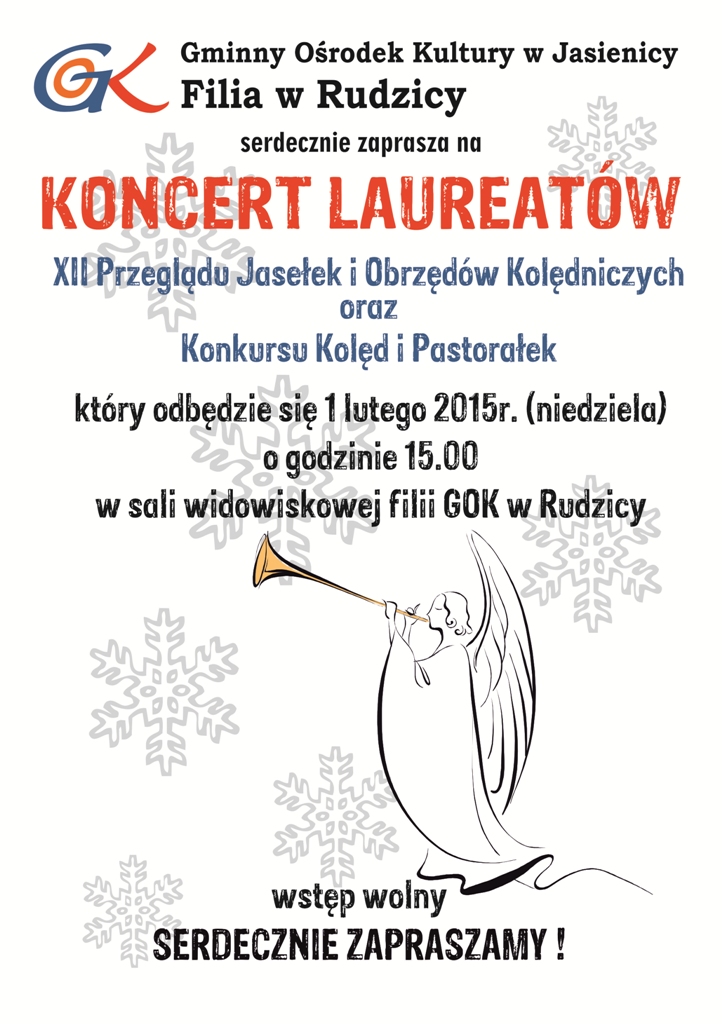 Koncert odbędzie się 1 lutego 2015 r. o godz. 15.00 w sali widowiskowej filii GOK w Rudzicy.