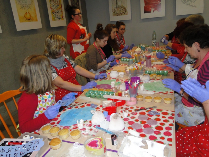 Dekorowanie „Cupcakesów” w Gminnym Ośrodku Kultury w filii w Rudzicy okazało się bardzo wciągającą zabawą na piątkowe popołudnie. Skupienie było tak ogromne, że ciężko było się oderwać, aby spróbować specjalnych babeczek przygotowanych przez Klaudię dla uczestników. Inspiracji do dekorowania dodawały narzędzia i foremki, a nawet fartuszki w bajecznych kolorach. Każdy z uczestników stworzył swoją kompozycję 4 uroczych babeczek, ułożonych w dekoracyjnym pudełku, a na koniec został uhonorowany certyfikatem ukończenia kursu dekoracji cupcakes, prowadzonym przez cukiernię „Gęsi Pipek”.