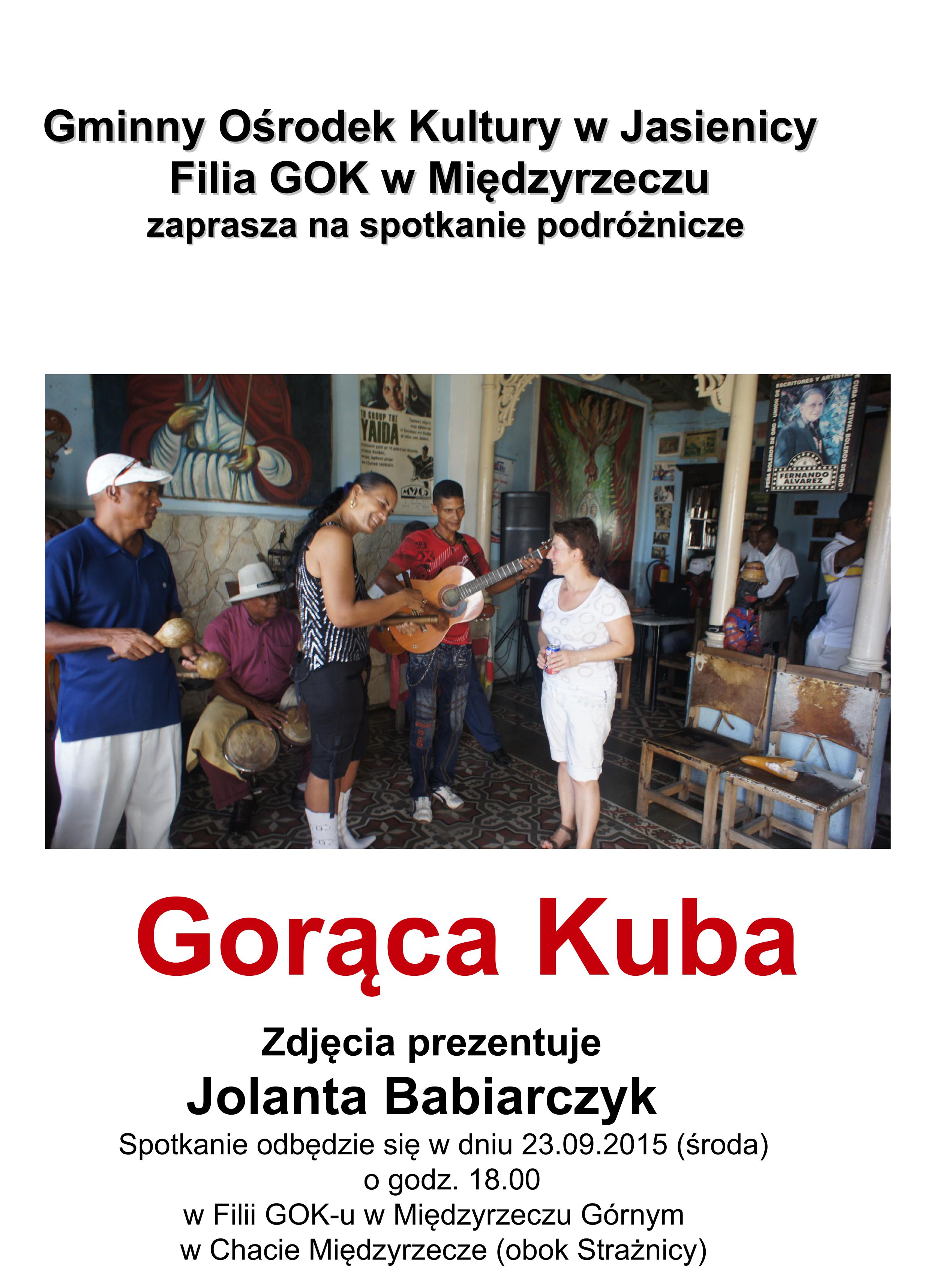 Gminny Ośrodek Kultury w Jasienicy filia w Międzyrzeczu Górnym zaprasza na spotkanie podróżnicze "Gorąca Kuba".