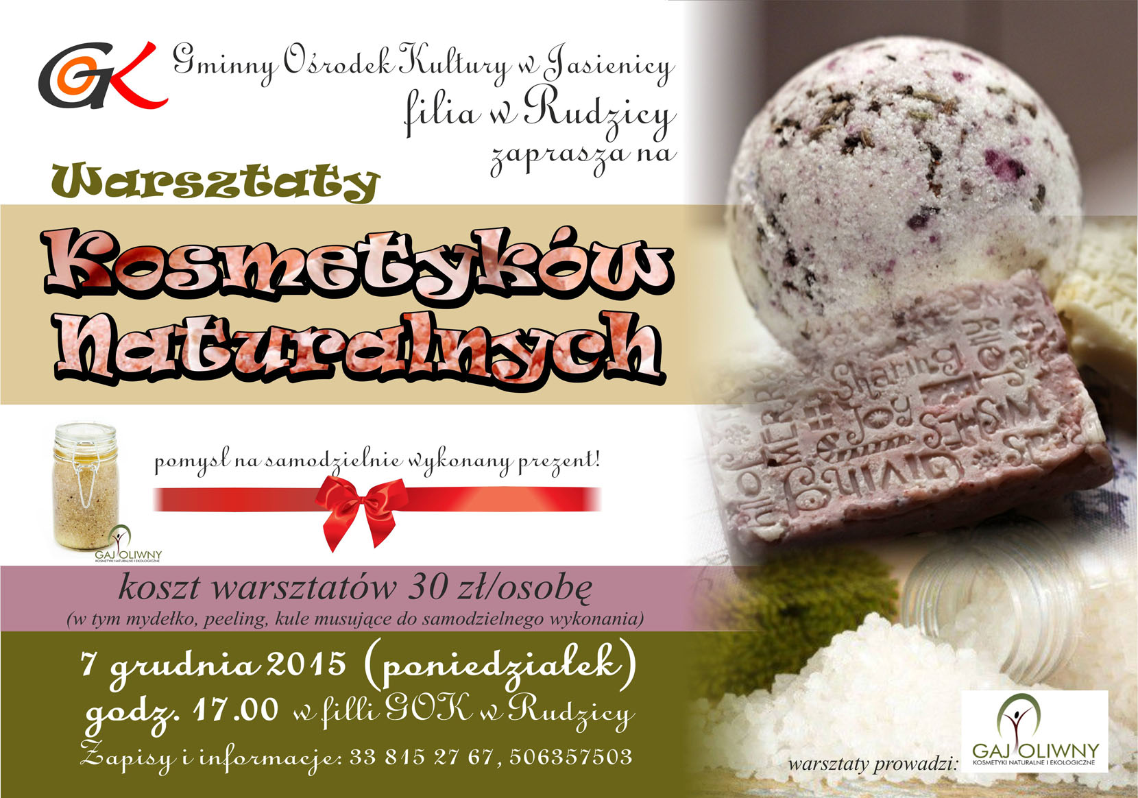 Zapraszamy do filii GOK w Rudzicy na warsztaty kosmetyków naturalnych.