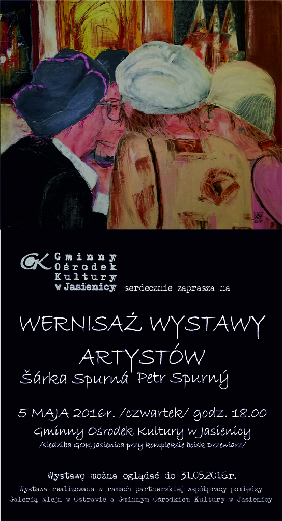 5 maja 2016 r. (czwartek) o godz. 18.00 zapraszamy do Gminnego Ośrodka Kultury w Jasienicy na wernisaż wystawy malarstwa. Swoje prace zaprezentują Šárka Spurná oraz Peter Spurný.