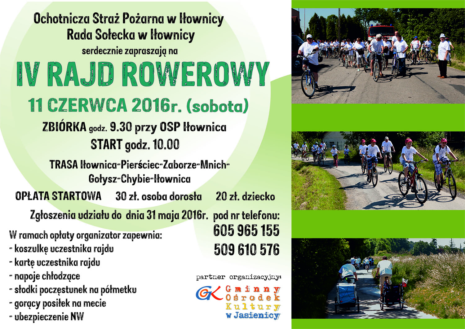W imieniu organizatorów: Ochotniczej Straży Pożarnej oraz Rady Sołeckiej w Iłownicy zapraszamy na IV Rajd Rowerowy.
