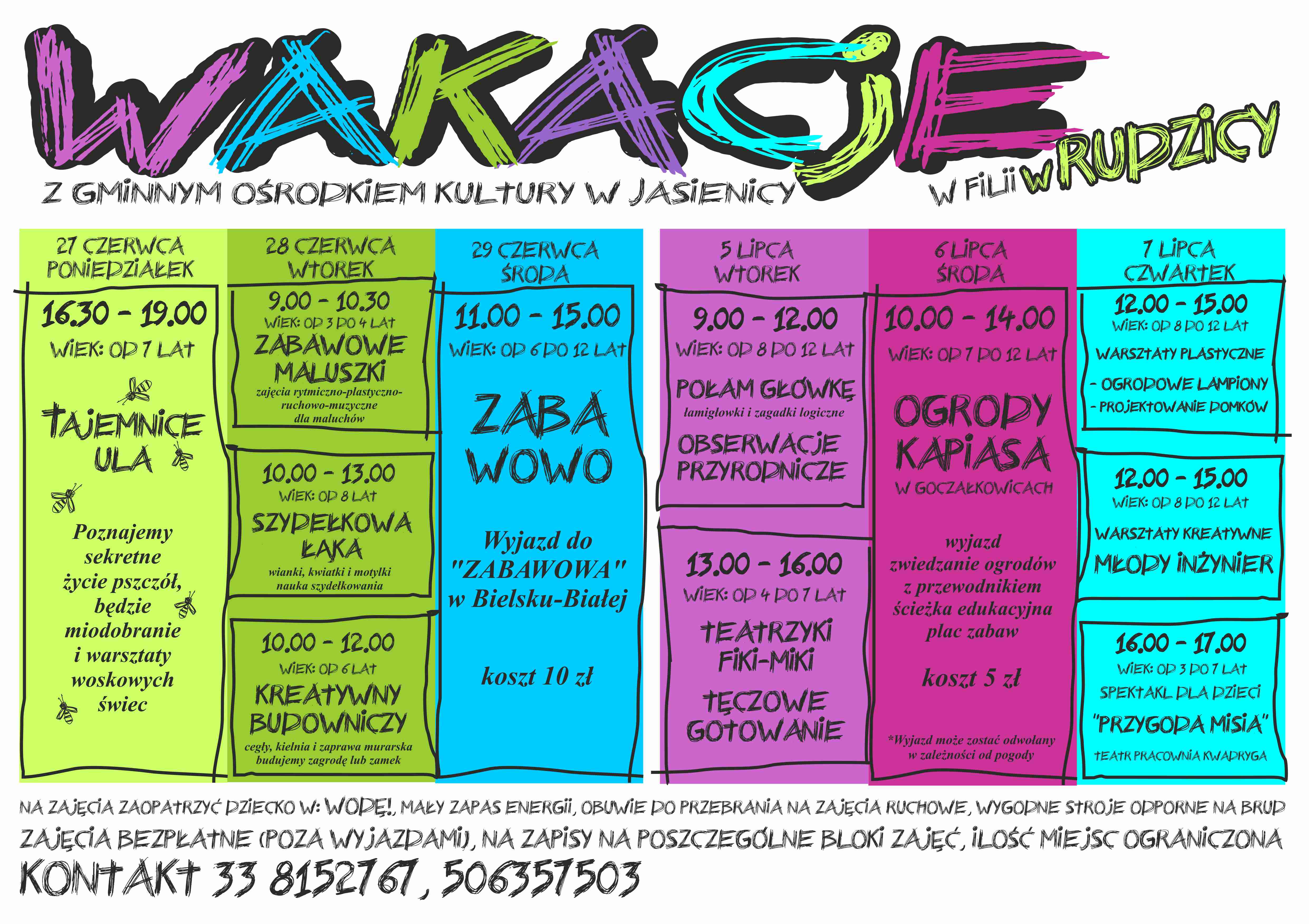 Zapraszamy na zajęcia wakacyjne do filii GOK w Rudzicy.