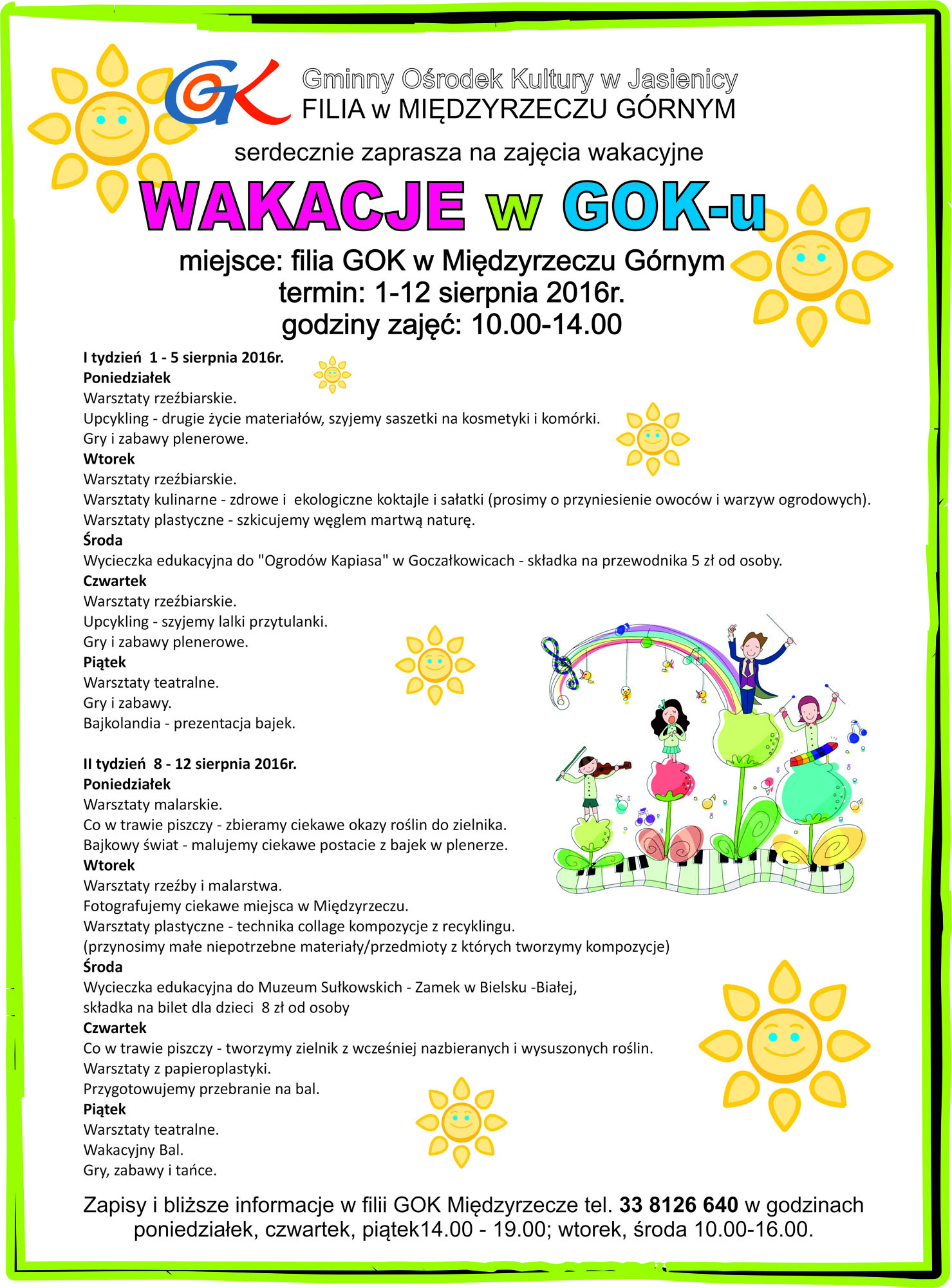Zapraszamy na zajęcia wakacyjne do filii GOK w Międzyrzeczu Górnym
