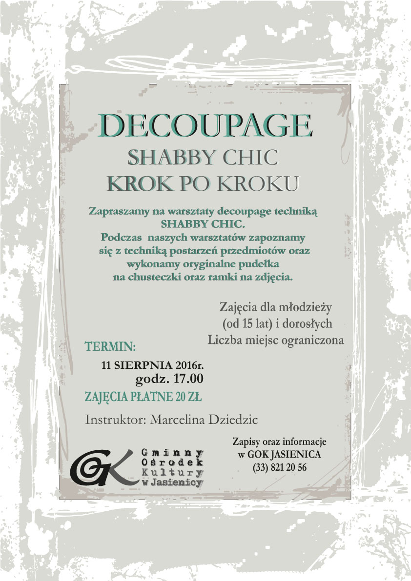 Zapraszamy na warsztaty decoupage techniką shabby chic.
