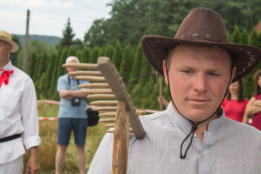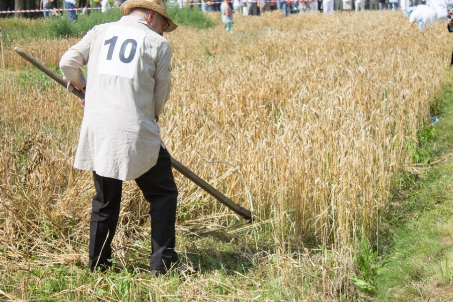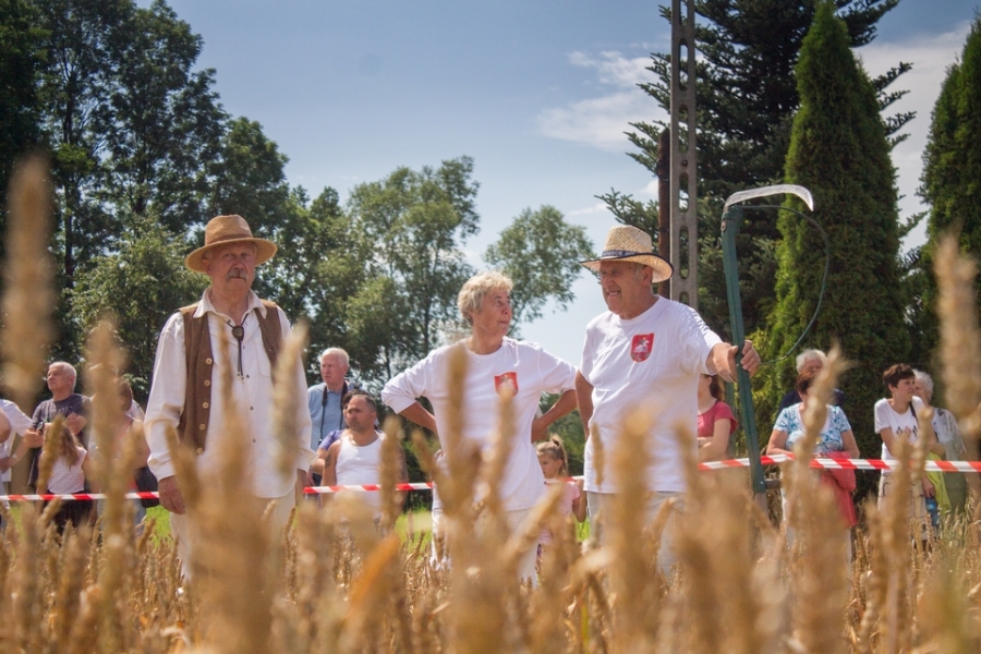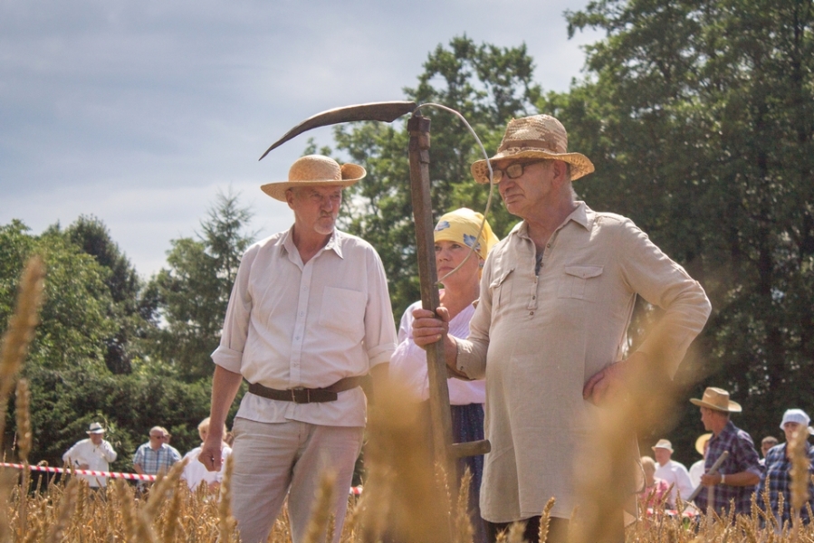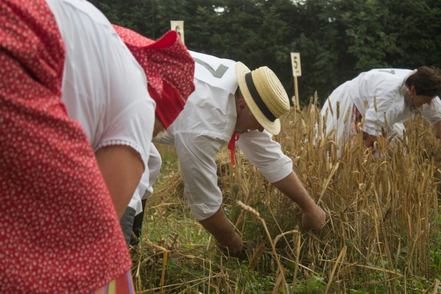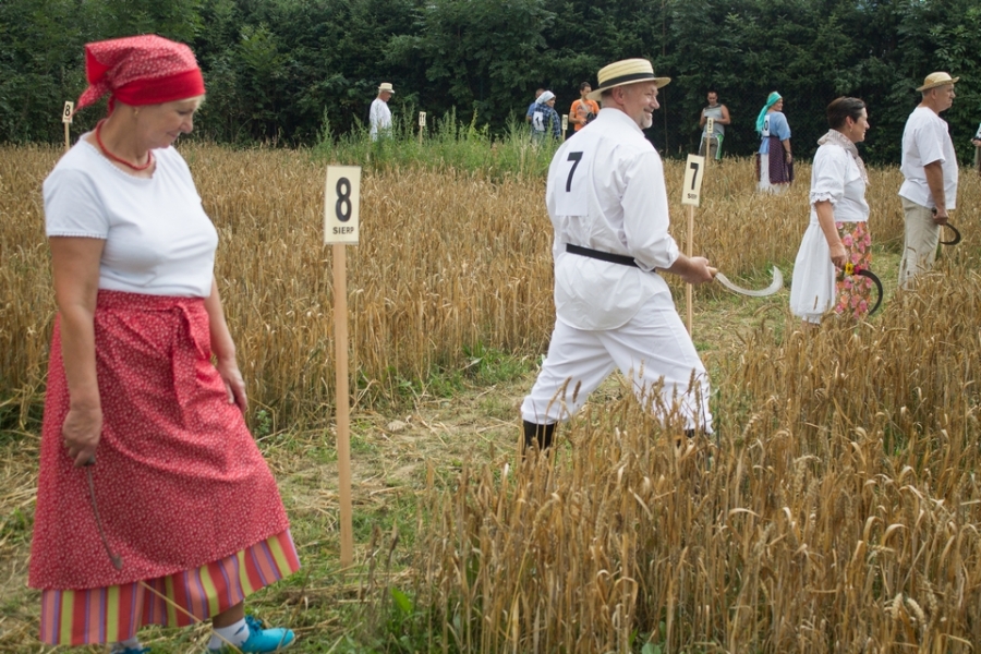 Jedna osoba kosiła zboże na wcześniej wylosowanym poletku, wiązała je w snopki i ustawiała kopki.