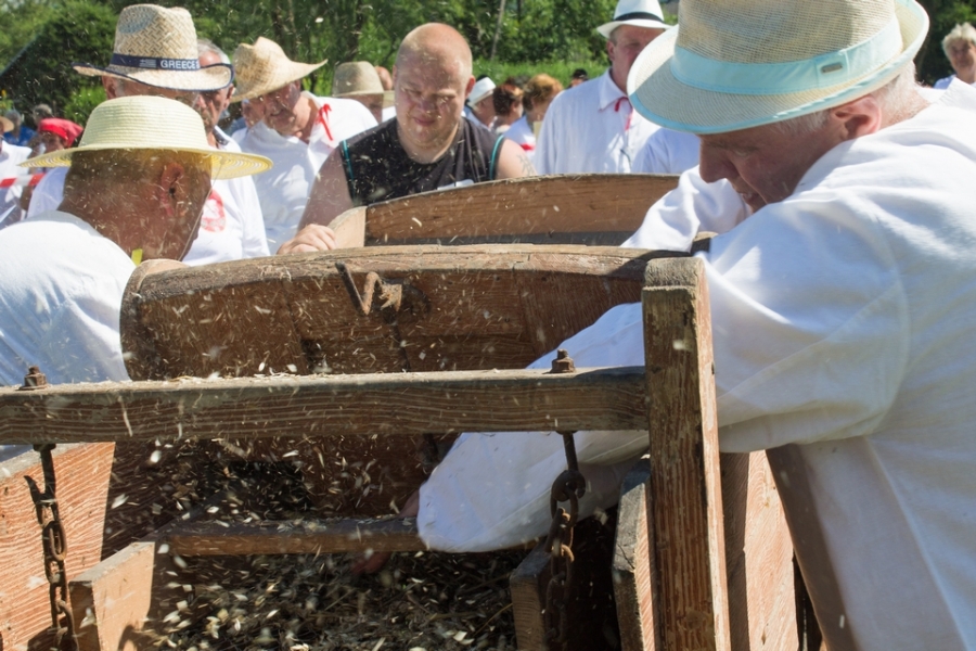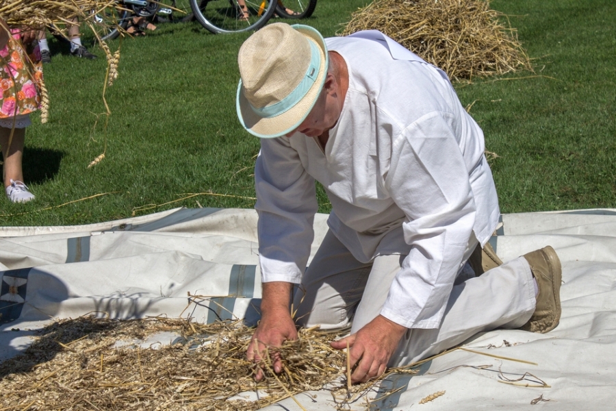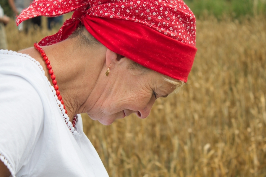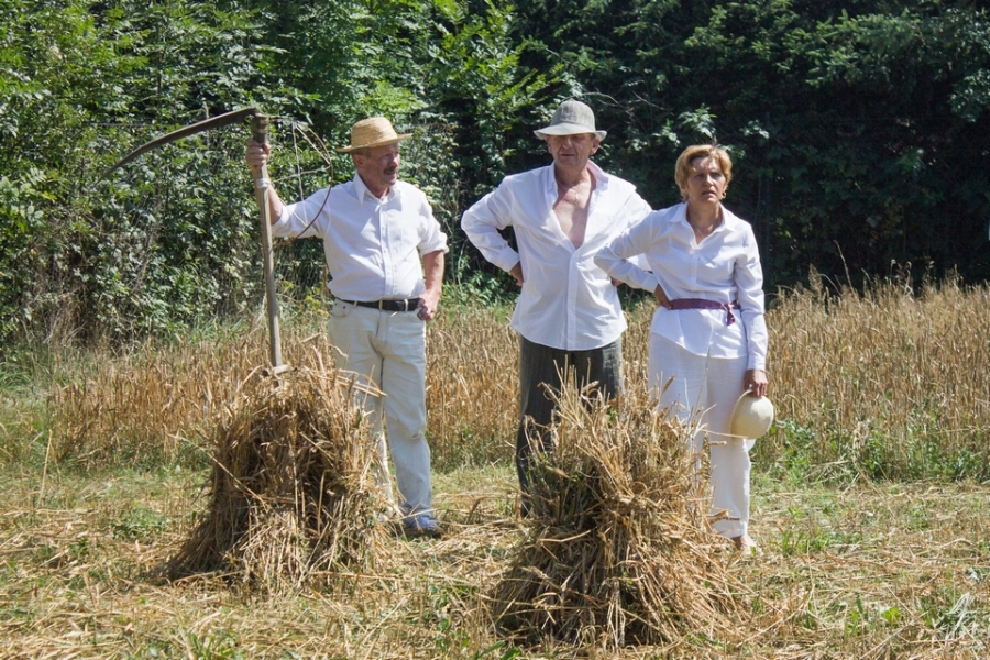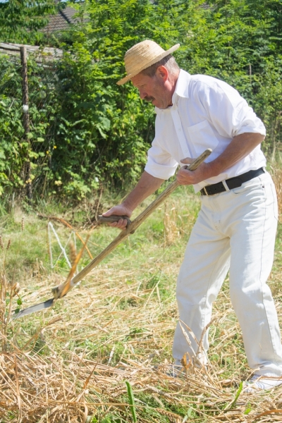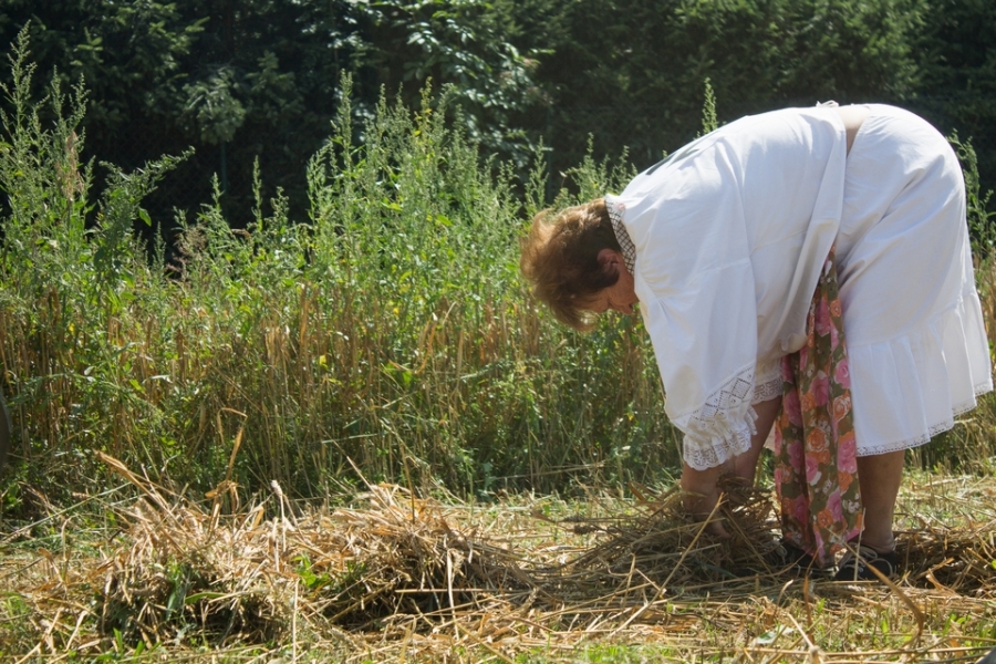 Jedna osoba kosiła zboże na wcześniej wylosowanym poletku, wiązała je w snopki i ustawiała kopki.