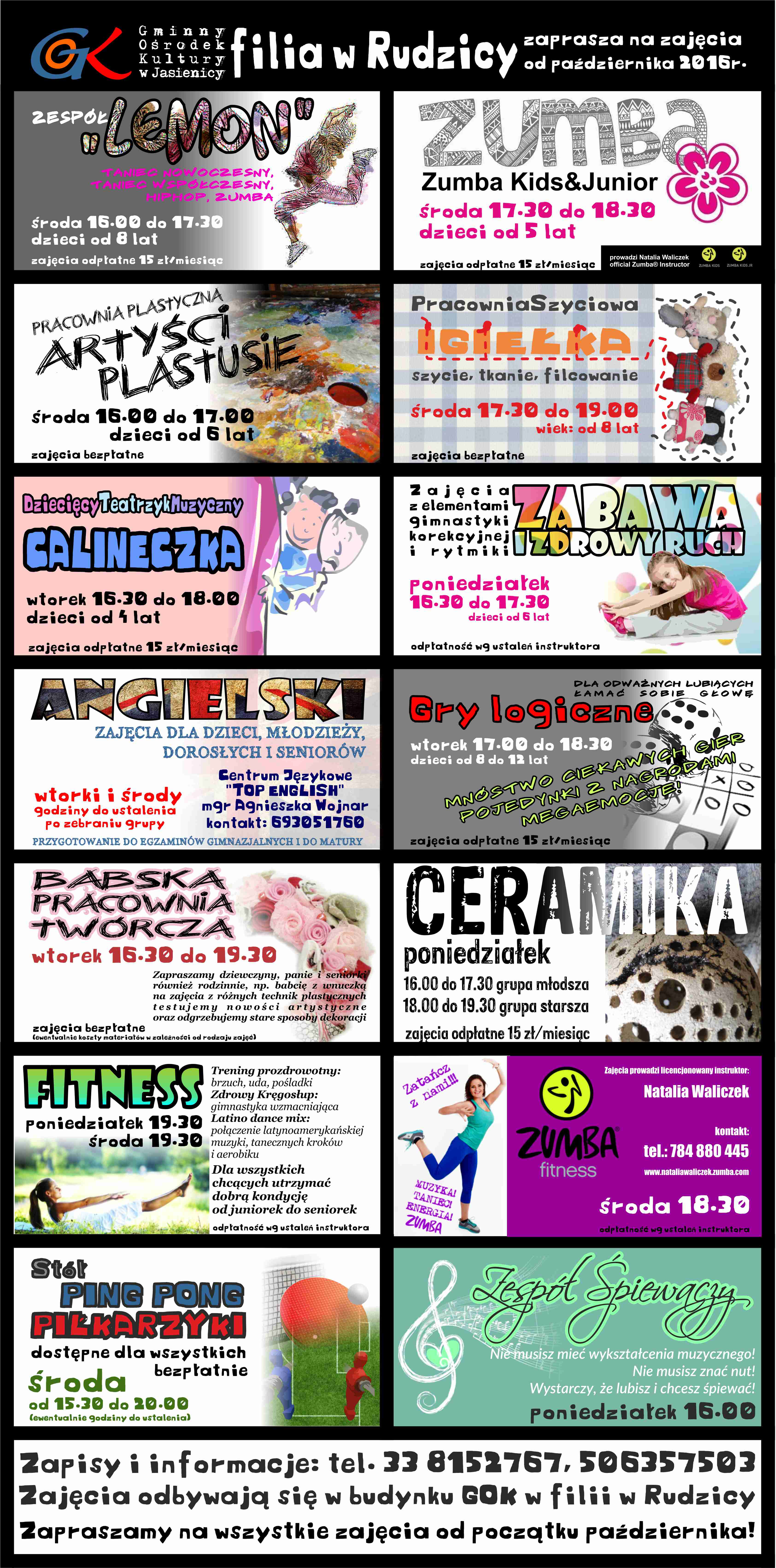 Gminny Ośrodek Kultury w Jasienicy filia w Rudzicy zaprasza dzieci, młodzież, dorosłych na zajęcia i warsztaty w sezonie 2016/2017.