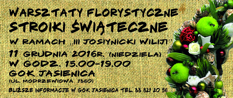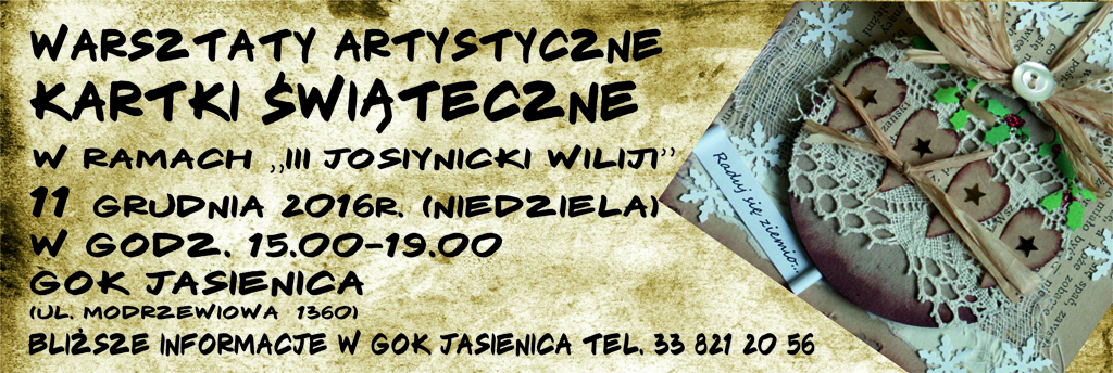 Impreza odbędzie się 11 grudnia 2016 r. w GOK Jasienica (siedziba GOK przy boiskach "Drzewiarz", ul.Modrzewiowa 1360) w godz. od 15.00 do 19.00.