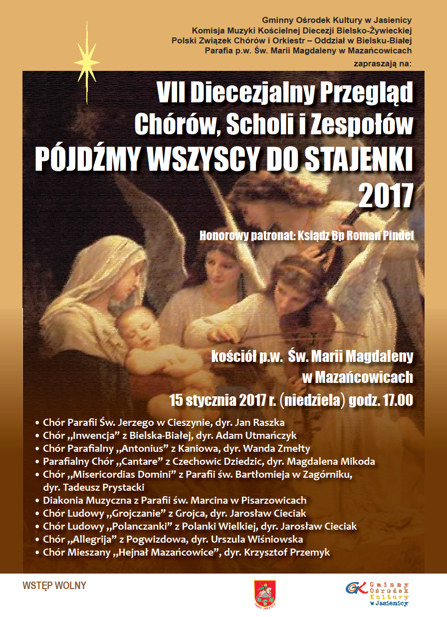 Zapraszamy na VII Diecezjalny Przegląd Chórów, Scholi i Zespołów "Pójdźmy wszyscy do stajenki" Mazańcowice 2017.