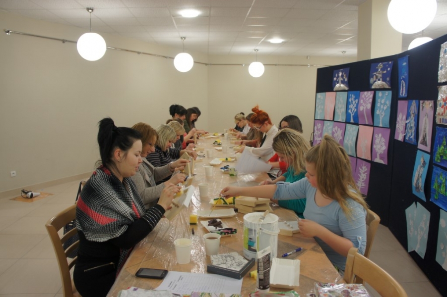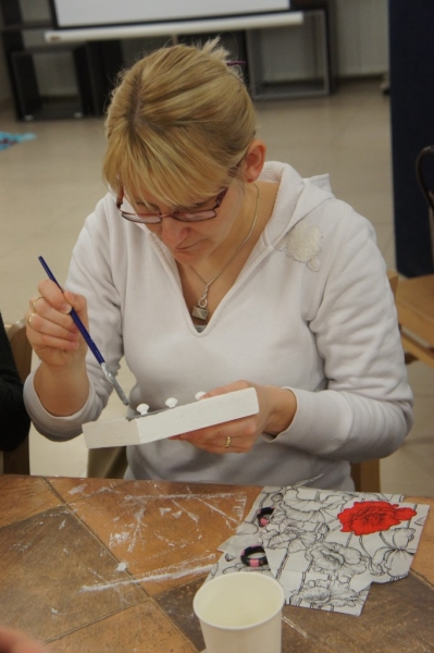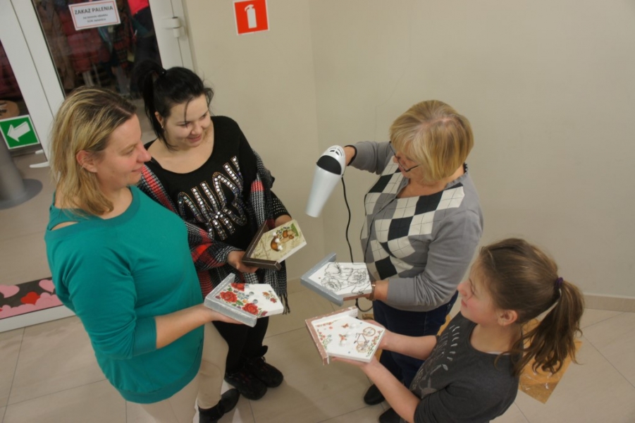 W piątek 10 lutego 2017 r. w Gminnym Ośrodku Kultury w Jasienicy odbyły się kolejne warsztaty DECOUPAGE SHABBY CHIC. Technika ta polega na zdobieniu przedmiotów tak, by wyglądały na postarzałe, a zarazem wytworne. Nic więc dziwnego, iż potocznie nazywana jest „zaniedbanym luksusem”. Tym razem panie ozdabiały drewniane wieszaki w kształcie domku. Efekty ich pracy wyszły bardzo imponująco, co można zobaczyć na załączonych zdjęciach. Zapraszamy na kolejne warsztaty w marcu :)